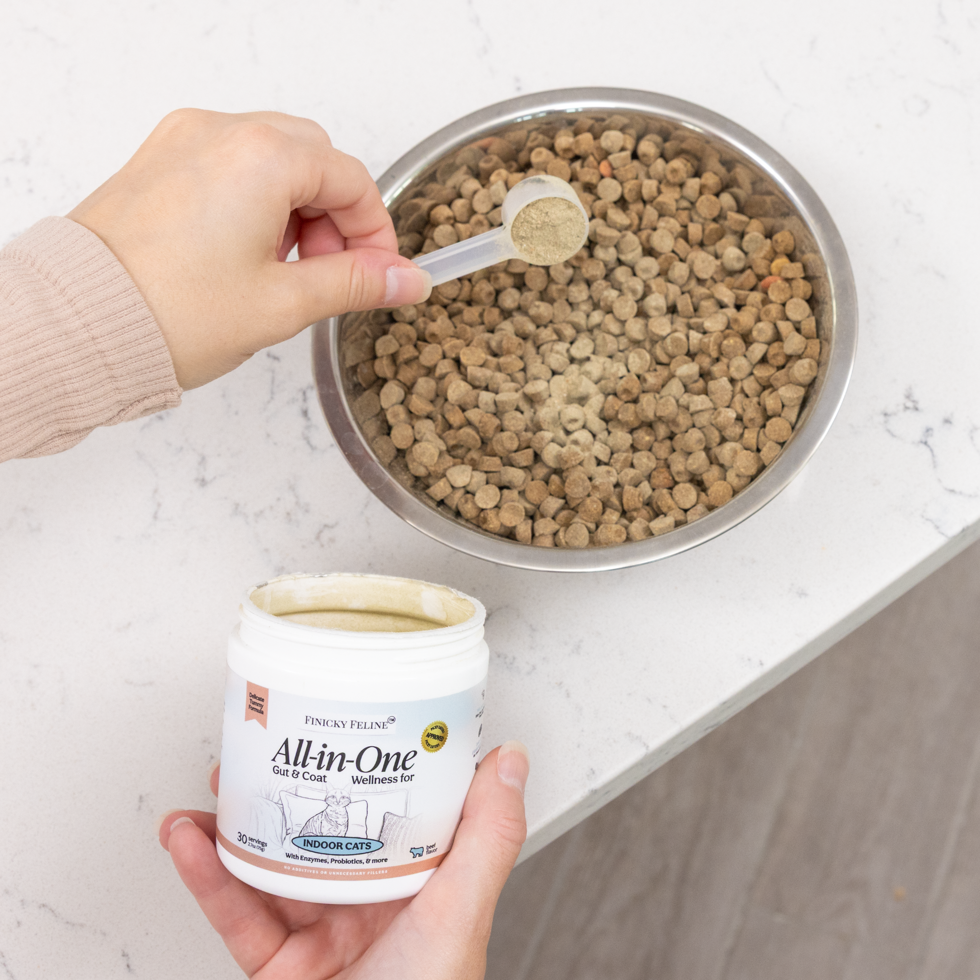 Your cat’s health deserves more than the ordinary. At Finicky Feline, we make wellness simple, delicious, and effective—with one scoop a day made just for finicky eaters and indoor lifestyles.