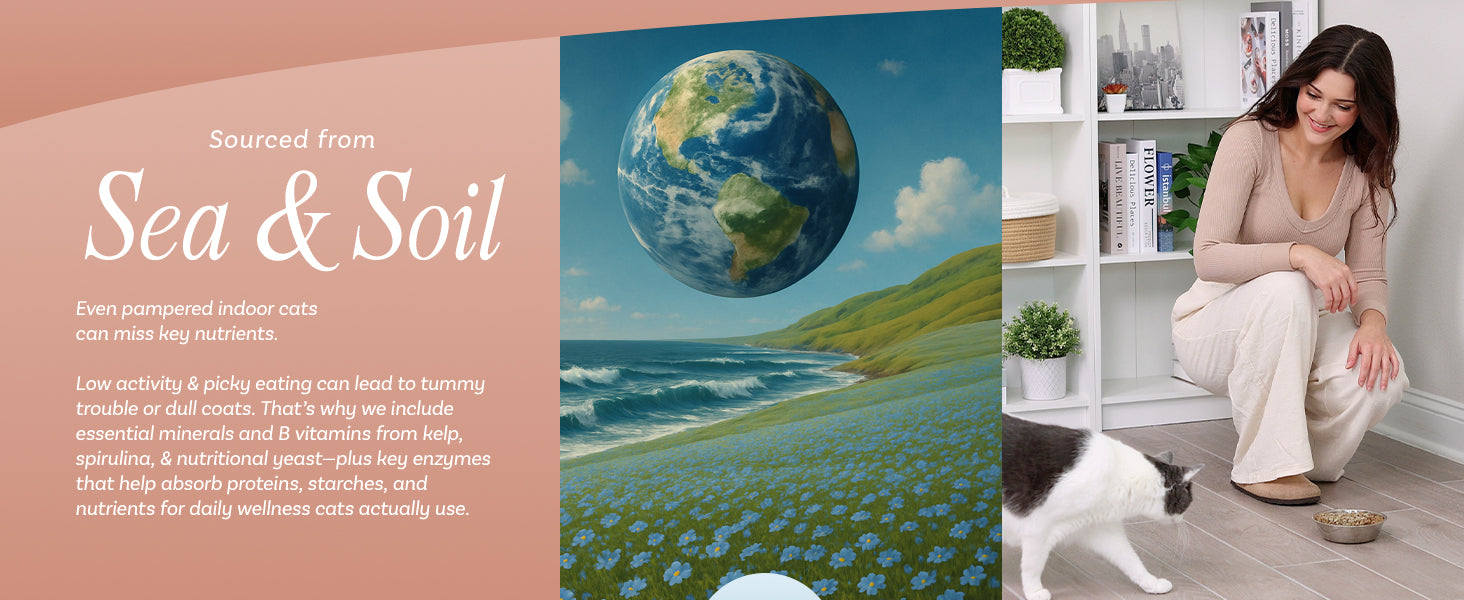 No fillers, no fluff—just real land-and-sea ingredients you can trust. We skip the synthetics, maltodextrin, and wood pulp to deliver only what your cat’s body truly needs for optimal health.